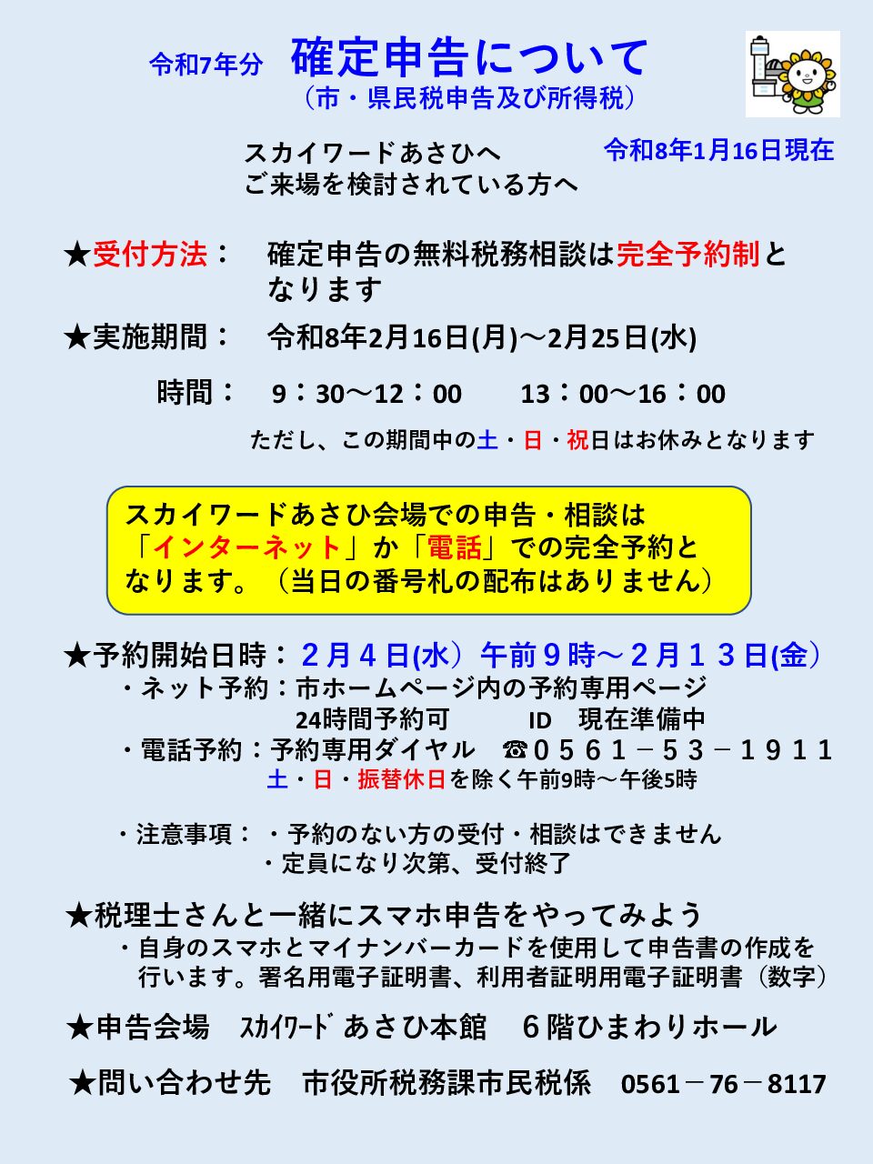 更新日:2026/01/16 令和7年1月1日から12月31日までの所得に係る市・県民税申告の受け付 […]